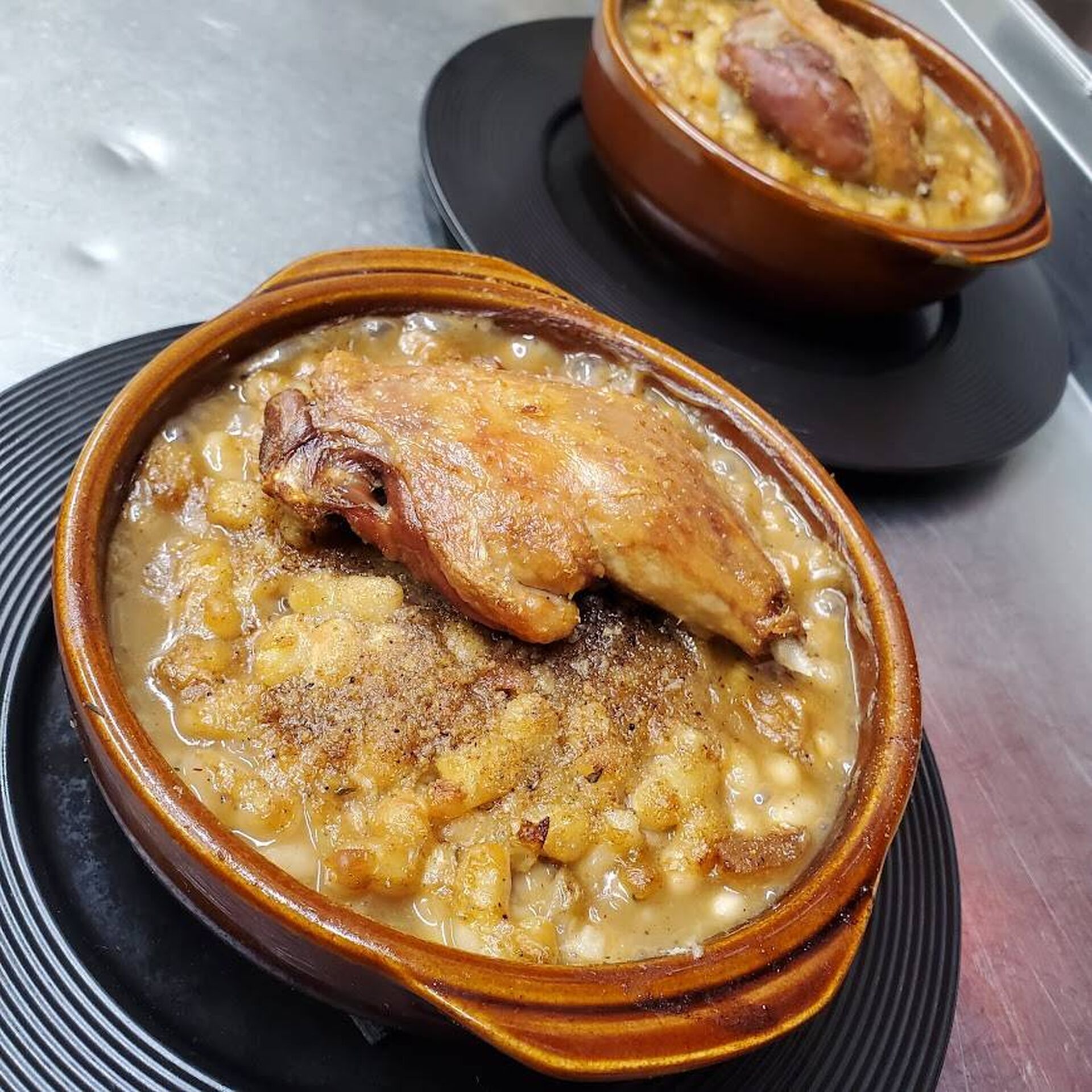 Il est servi dans des cassoles traditionnelles idéales pour la cuisson.